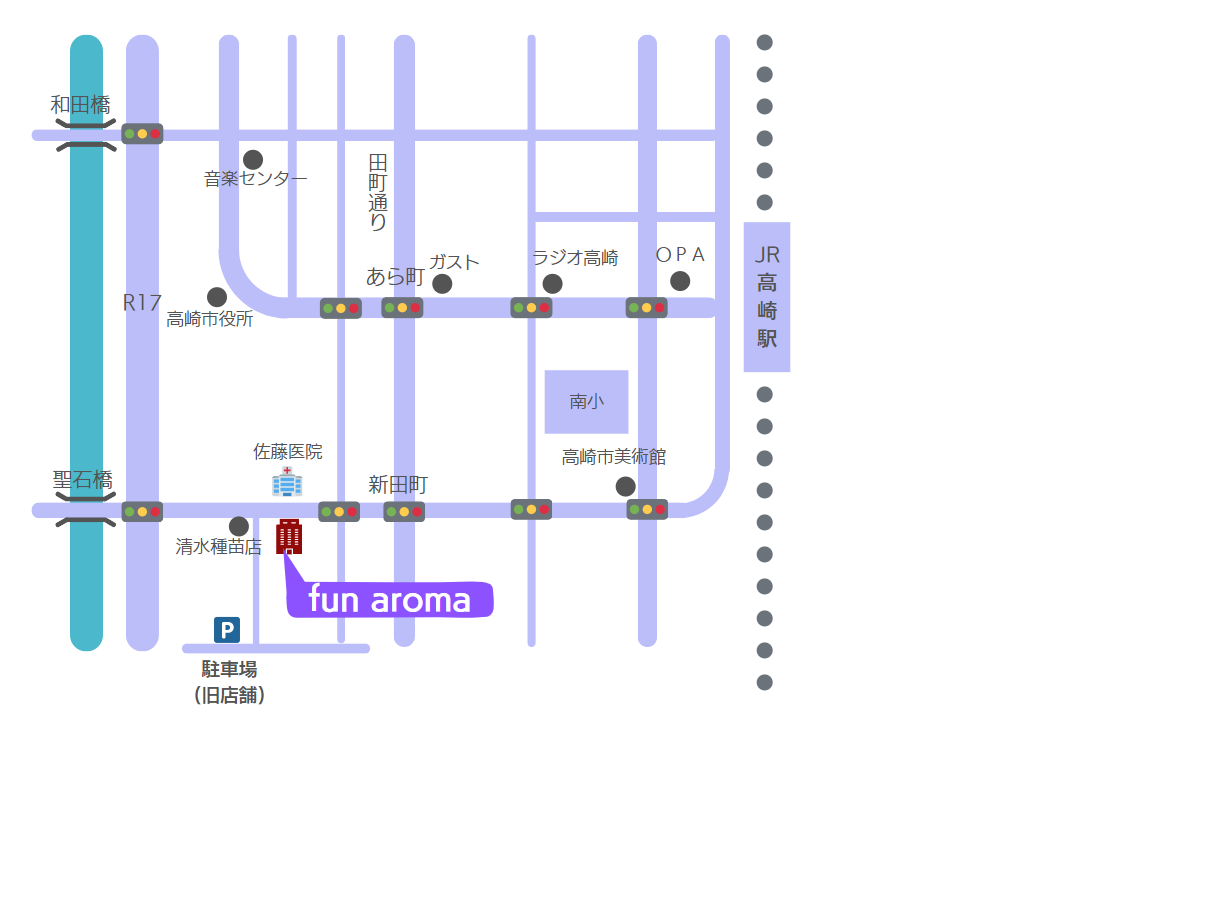 現在のサロンより徒歩2分、聖石橋より高崎駅方面の観音通り沿い、佐藤病院(産婦人科)様向かい、松島軒様と駐車場を挟んだ赤茶色の3階建てビルの1階となります。通りに面していますので、とても分かりのいい場所となりました。